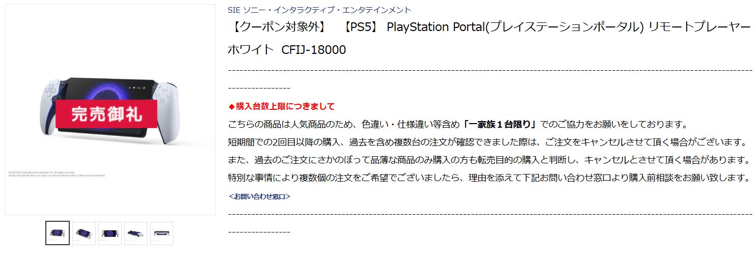 ノジマオンラインでPlayStation Portalが品薄ぎみ。「モンハン」新作の影響か
